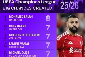 本赛季欧冠创造重大机会榜: