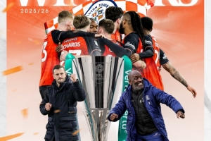 卢顿3-1战胜斯托克港夺英锦赛冠军,34岁威尔希尔获执教生涯首冠